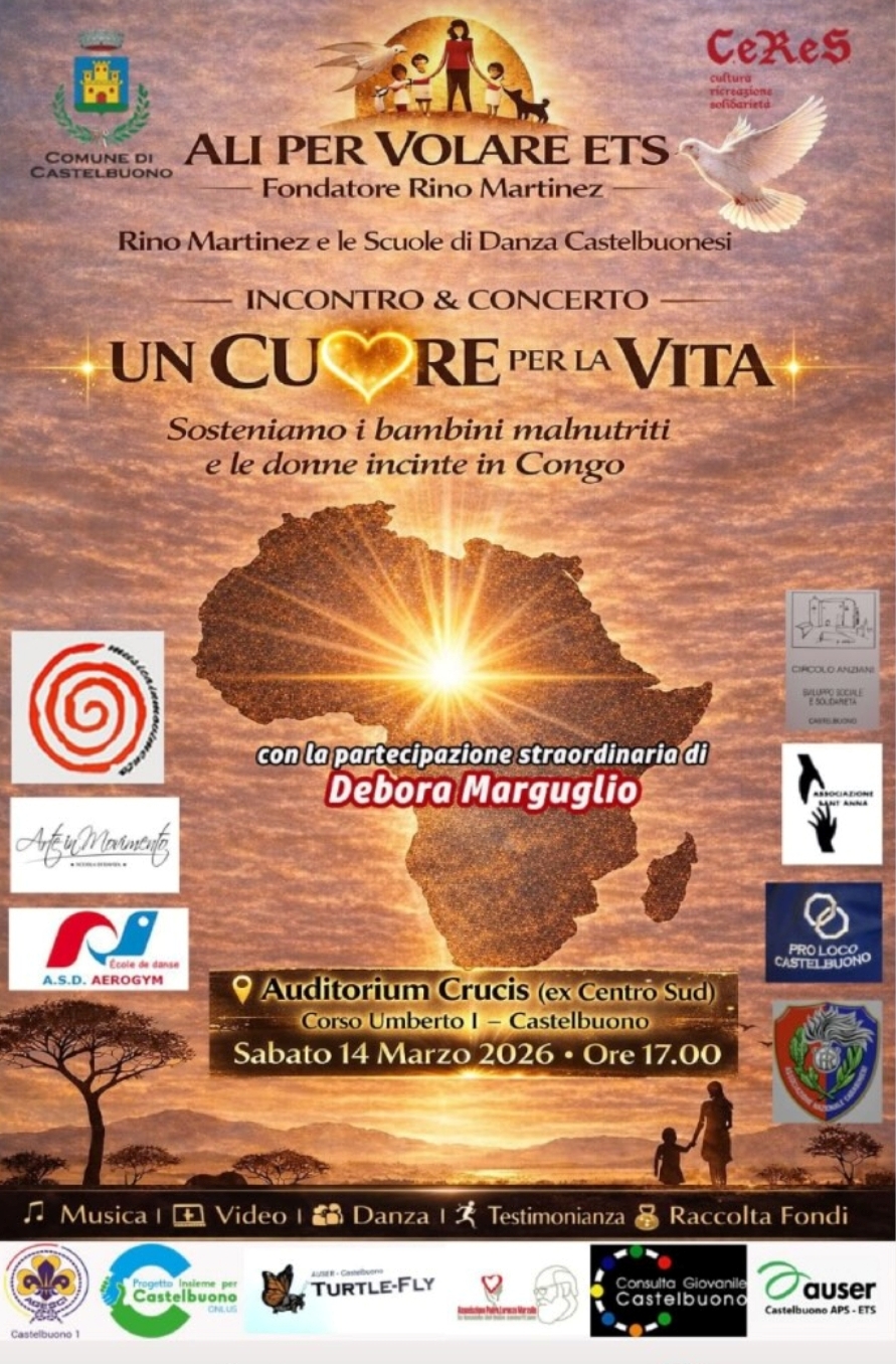 Presso l'Auditorium Crucis di Castelbuono sabato 14 marzo alle ore 17:00 si terrà un incontro denominato "Un Cuore per la Vita". L'evento è organizzato per sostenere i bambini malnutriti e le donne incinte del Congo. Il comune di Castelbuono sostiene le iniziative di beneficienza in accordo con l'associazione CeReS, la Pro Loco, la scuola di danza Aerogym e altre ancora. Si è invitati a partecipare.